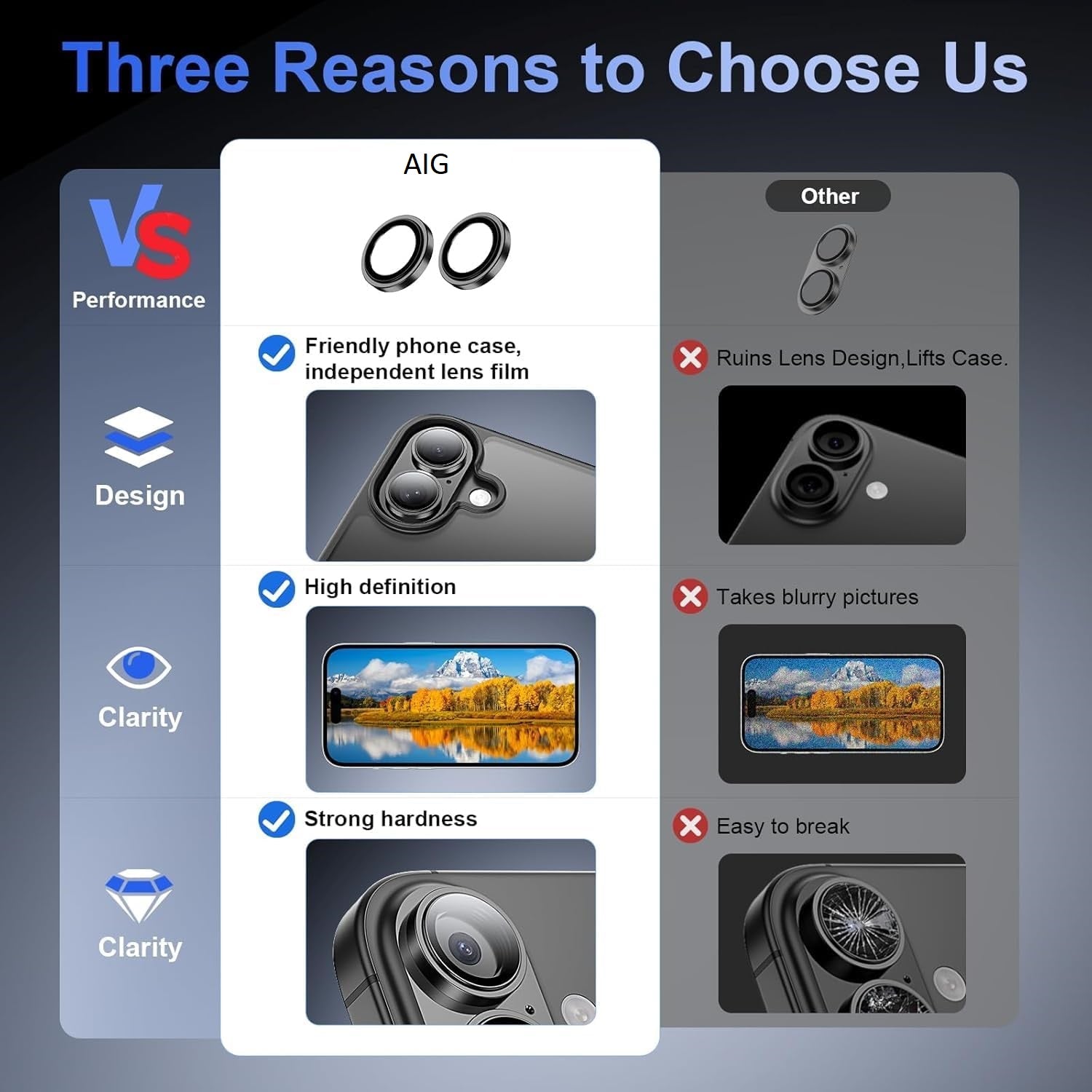 AIG Camera Lens Protector for iPhone 17 – 9H Tempered Glass, Metal Ring, HD Clear, Anti-Scratch, Case Friendly – Black